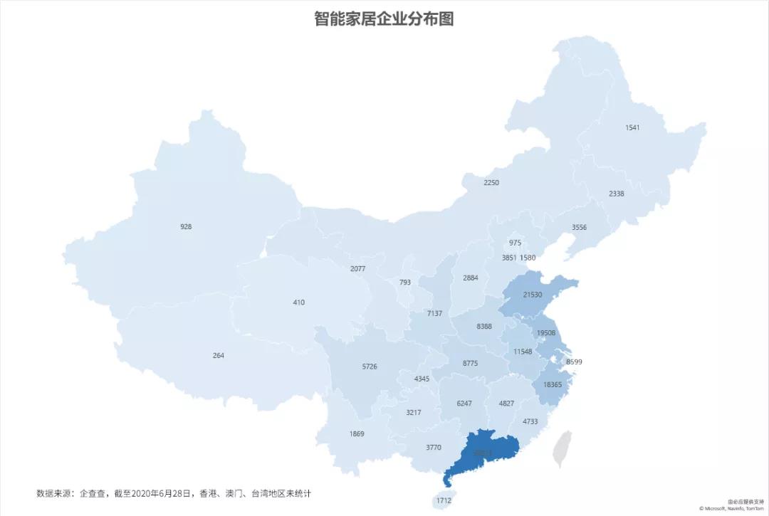 企查查数据显示,截至6月28日,我国今年共新成立26855家相关企业(企业名称、品牌或经营范围包含“智能家居”,在业/存续状态,下同),我国智能家居企业总数已达223271家!即便除去蹭热度的数据,真正在做智能家居的厂家依然不在少数,这也从侧面印证了智能家居行业正受到市场热捧。 从地域来看,广东 (59523)、山东 (21530)、江苏 (19508)、浙江 (18365)、安徽 (11548)分列前五。